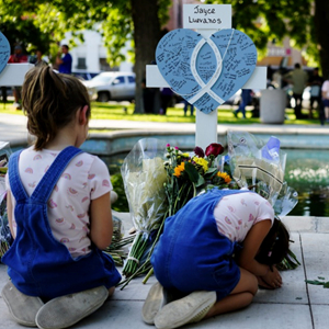 5月27日,在美国得克萨斯州南部尤瓦尔迪市的城市广场,市民哀悼枪击事件遇害者。新华社记者吴晓凌摄