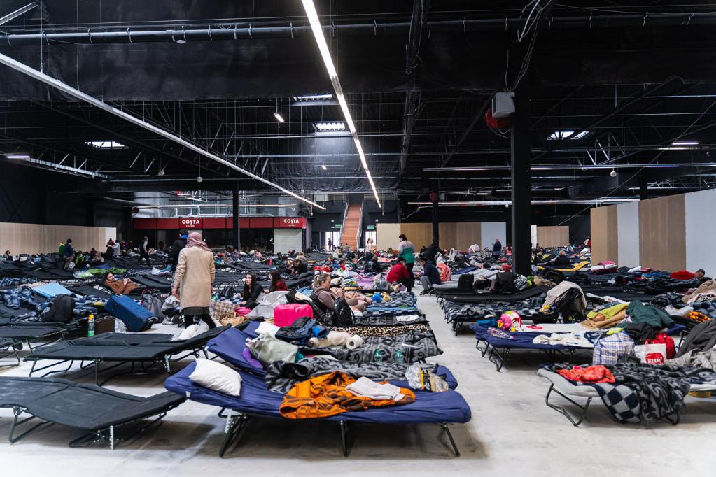 这是3月8日在波兰华沙国际会展中心拍摄的为乌克兰人搭建的简易床铺。新华社发(华沙PTAK国际会展中心供图)