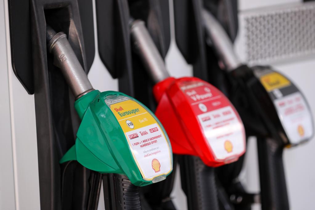 这是2020年4月9日在比利时布鲁塞尔拍摄的一处自助加油站的加油枪。新华社记者张铖摄