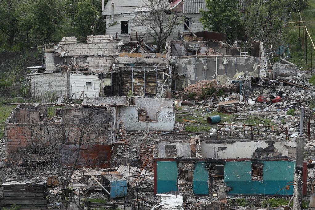这是5月26日在卢甘斯克波帕斯纳亚拍摄的被损坏的建筑。新华社发(维克托摄)