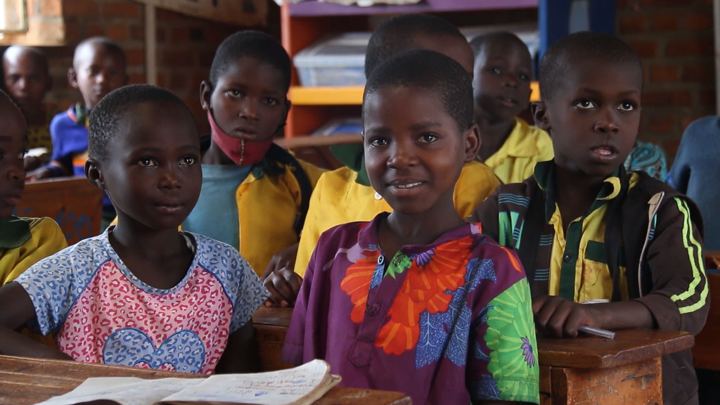 卢旺达北方省吉康比地区一所学校内,孩子们正在上课。(视频截图)