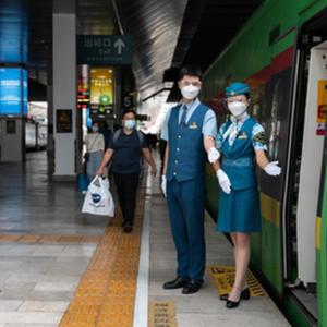 在昆明站拍摄的中国铁路昆明局集团有限公司昆明客运段乘务员(6月2日摄)。