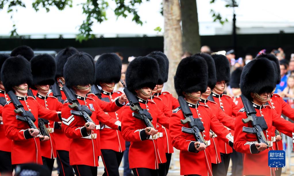 6月2日,在英国伦敦,士兵参加阅兵式。