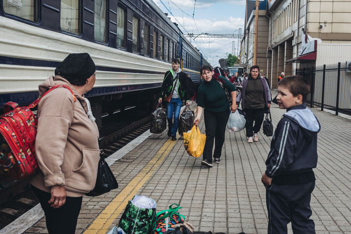 5月23日,在顿涅茨克的波克罗夫斯克,人们准备登上火车。新华社发(迭戈·埃雷拉摄)