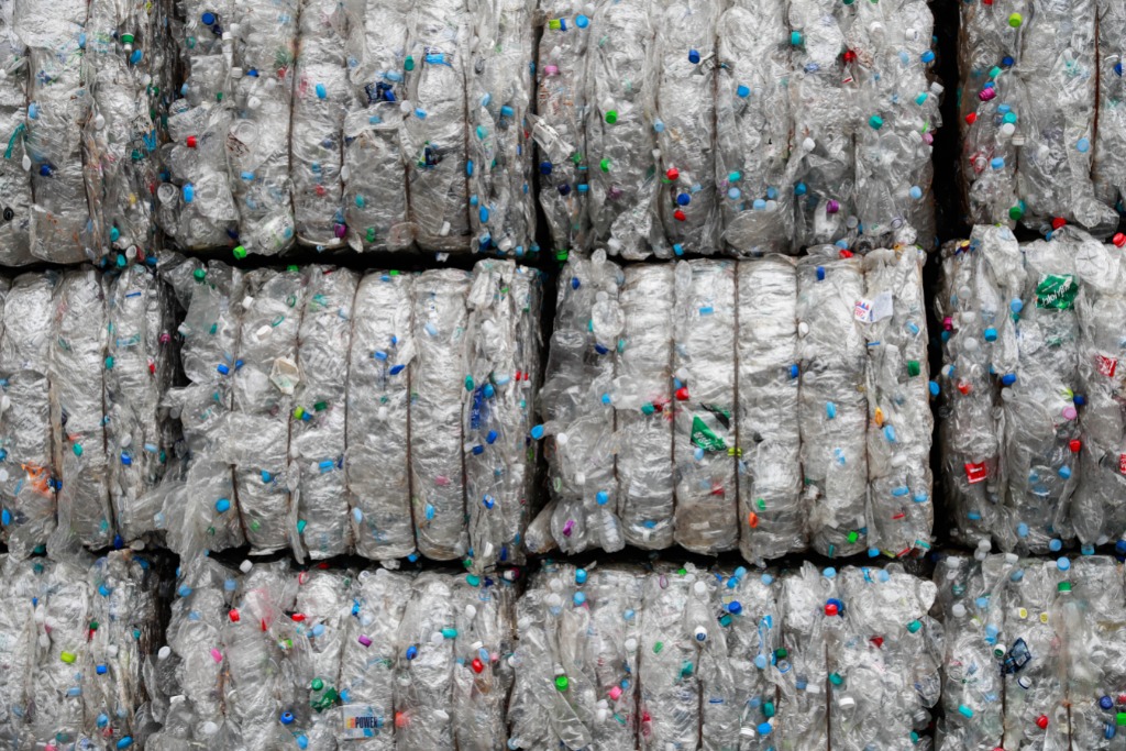堆放在韩国江原道横城郡的一个塑料垃圾处理厂内的废弃PET塑料瓶(2021年5月27日摄)。新华社记者王婧嫱摄