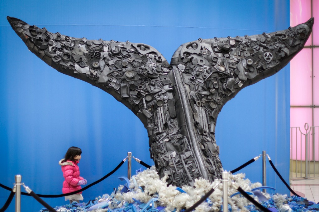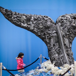 这是2月23日在加拿大伯纳比举行的“冲上海岸”艺术展上拍摄的参展作品。该展览上的作品全部由从海洋中收集的塑料垃圾制成,旨在使参观者了解海洋生态污染的严重性和减少海洋塑料垃圾的重要性。新华社发(梁森摄)