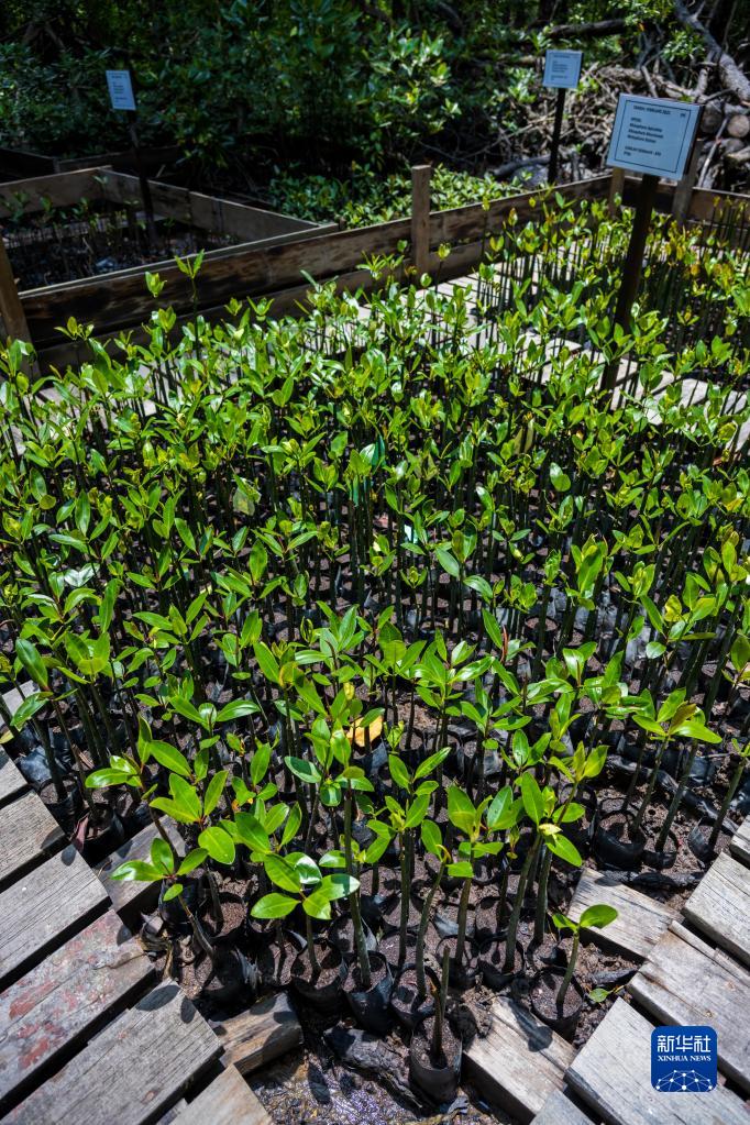 这是4月19日在马来西亚柔佛州丹绒比艾国家公园拍摄的红树树苗。为了保护红树林,丹绒比艾国家公园内建立起红树育苗基地,计划每年育苗1万株。