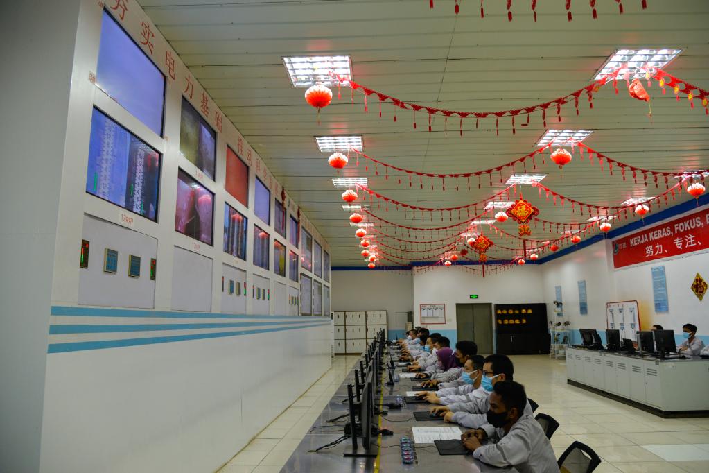 5月18日,在印度尼西亚东南苏拉维西省德龙工业园肯达里基地,员工在发电厂中控室工作。新华社记者徐钦摄
