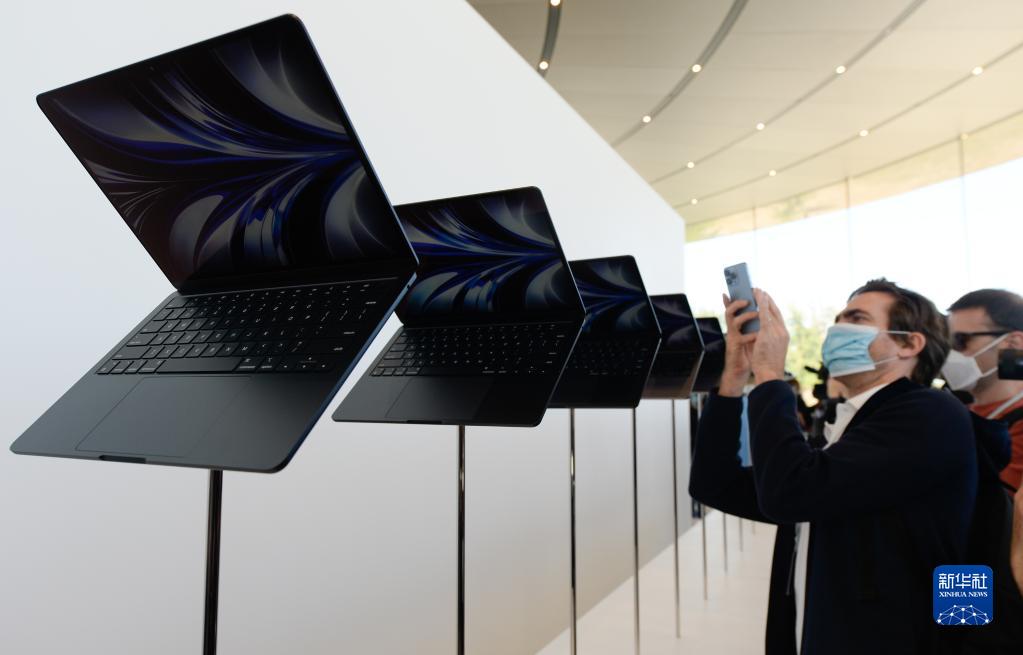 6月6日,人们在美国加利福尼亚州丘珀蒂诺市苹果公司总部的乔布斯剧院内拍摄发布的新品。
