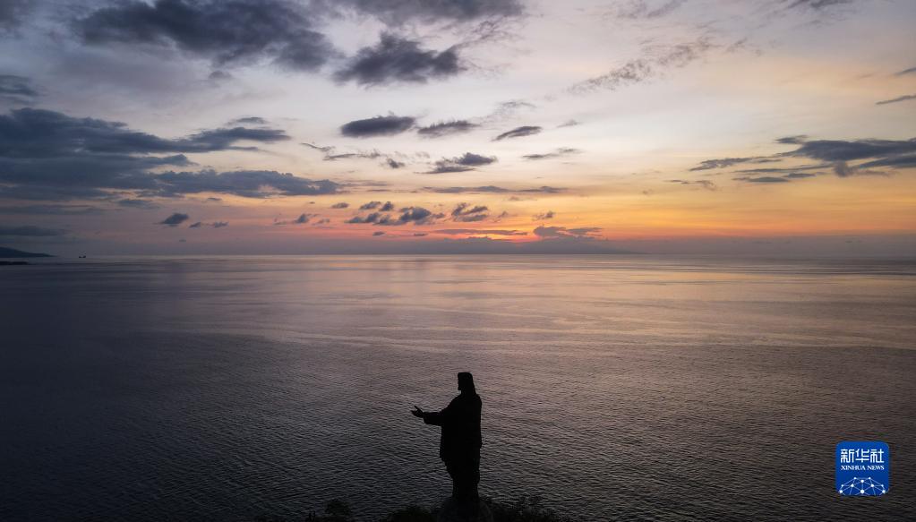 这是5月31日在东帝汶首都帝力的海边拍摄的黄昏风景(无人机照片)。 新华社记者 徐钦 摄