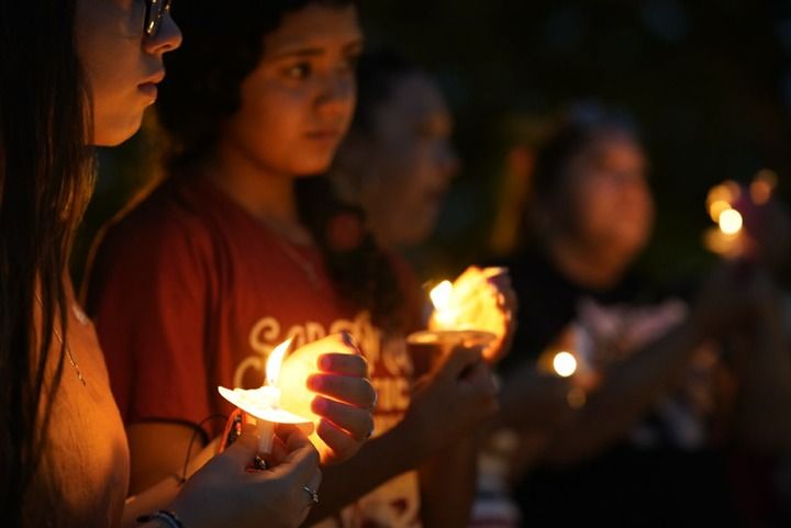 5月29日,在美国得克萨斯州南部尤瓦尔迪市的城市广场,市民为枪击事件遇害者守夜。新华社记者吴晓凌摄
