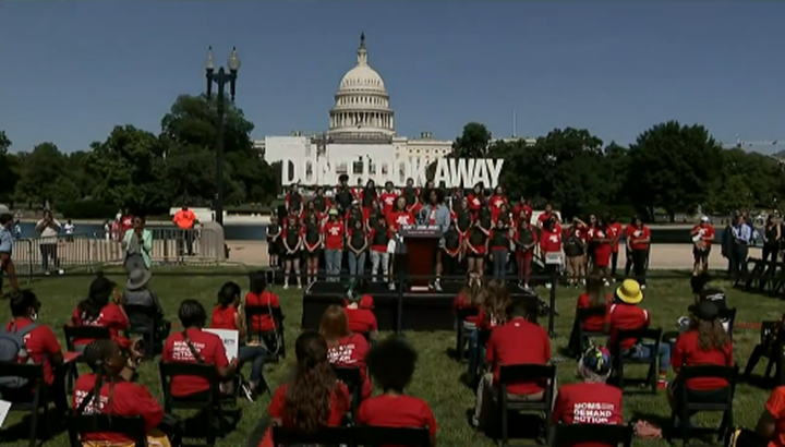 6月6日,美国青少年在美国首都华盛顿国会大厦脚下参加控枪集会(视频截屏)