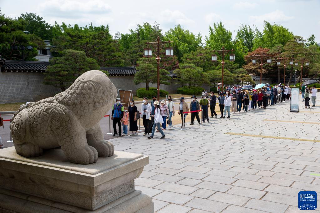 6月8日,在韩国首尔,游客排队参观青瓦台迎宾馆。新华社记者 王益亮 摄