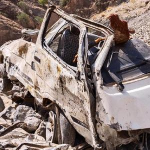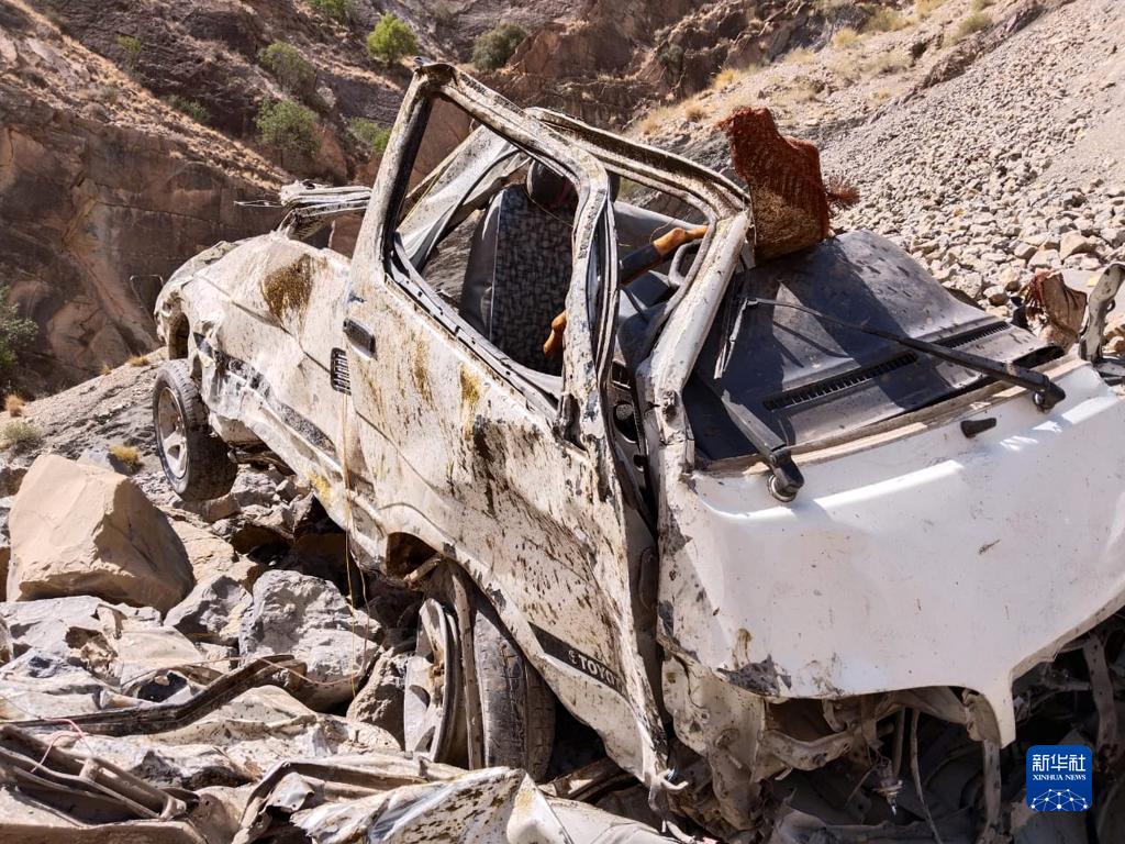 这是6月8日在巴基斯坦西南部俾路支省吉拉赛富拉地区拍摄的坠入山谷的汽车残骸。