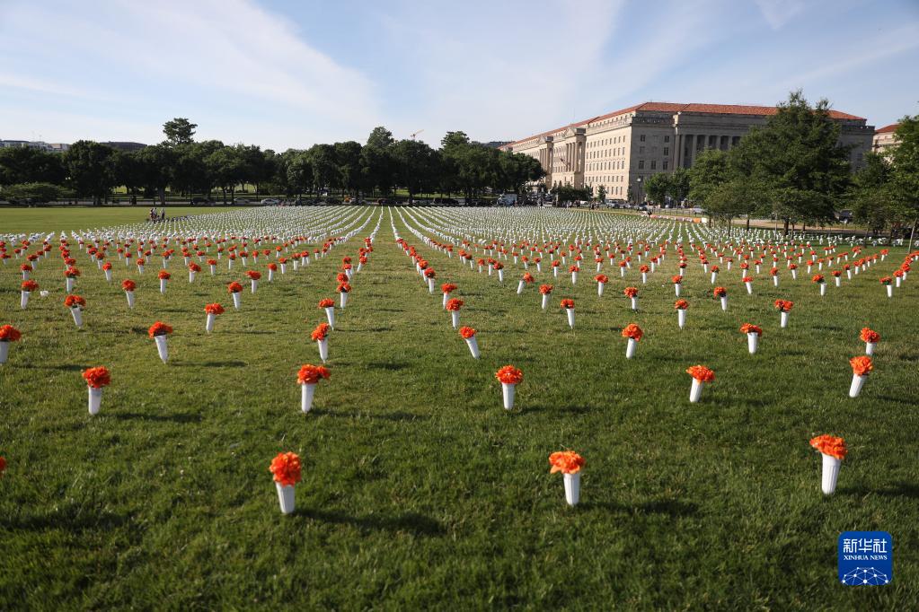 美国华盛顿:绢花悼念全美枪支暴力受害者
