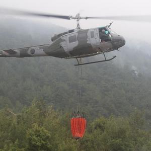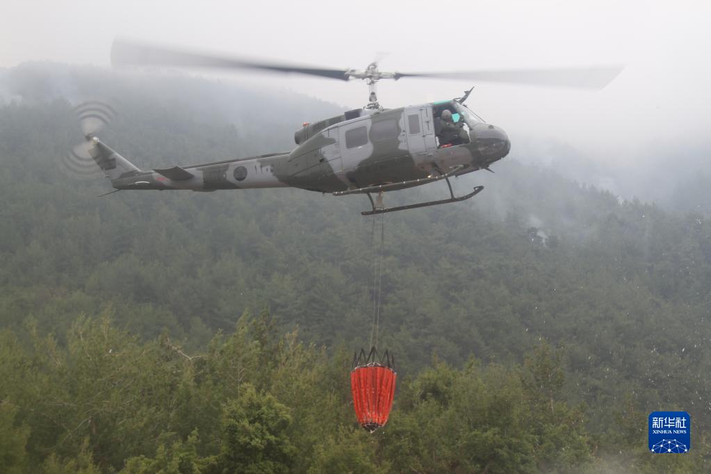 6月8日,一架军用直升机在黎巴嫩北部的丹尼耶地区进行灭火作业。