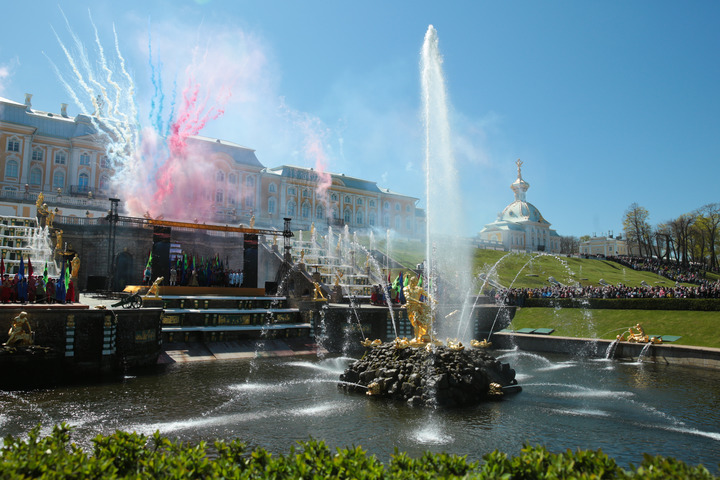 这是5月21日在俄罗斯圣彼得堡夏宫拍摄的喷泉。新华社发(莫京娜摄)