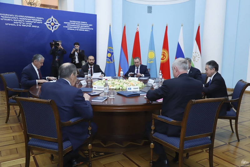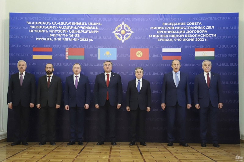 ↑6月10日,集体安全条约组织(集安组织)外长理事会会议在亚美尼亚埃里温举行。新华社发(亚美尼亚外交部供图)