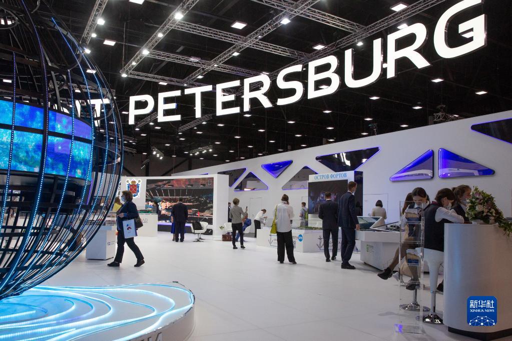6月15日,在俄罗斯圣彼得堡,人们参观第25届圣彼得堡国际经济论坛展台。