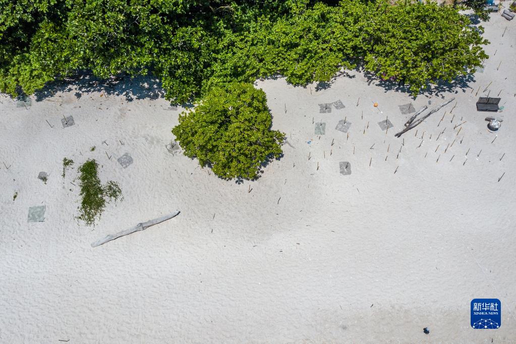 这是6月14日拍摄的马来西亚丁加奴州热浪岛北部査加尔瑚棠海龟保护区(无人机拍摄)。