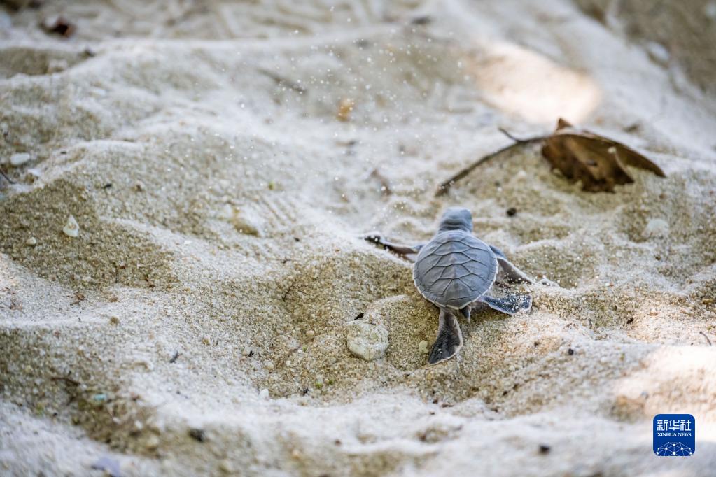 这是6月14日在马来西亚丁加奴州热浪岛北部査加尔瑚棠海龟保护区拍摄的刚孵化出来的小海龟。