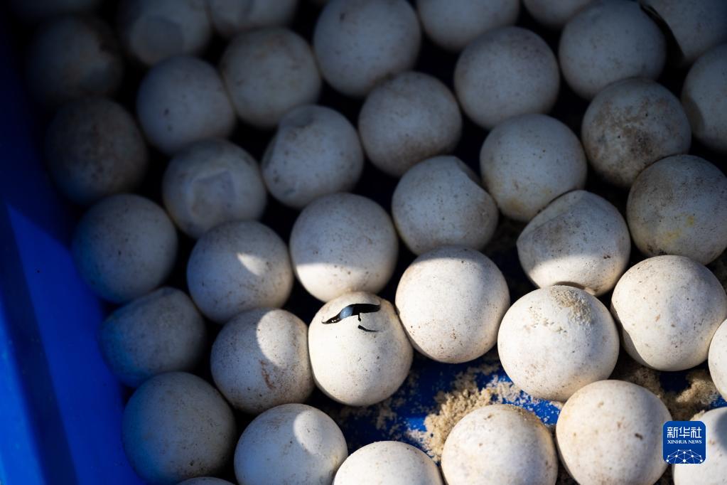 这是6月15日在马来西亚丁加奴州热浪岛北部査加尔瑚棠海龟保护区拍摄的还未孵化的海龟蛋。