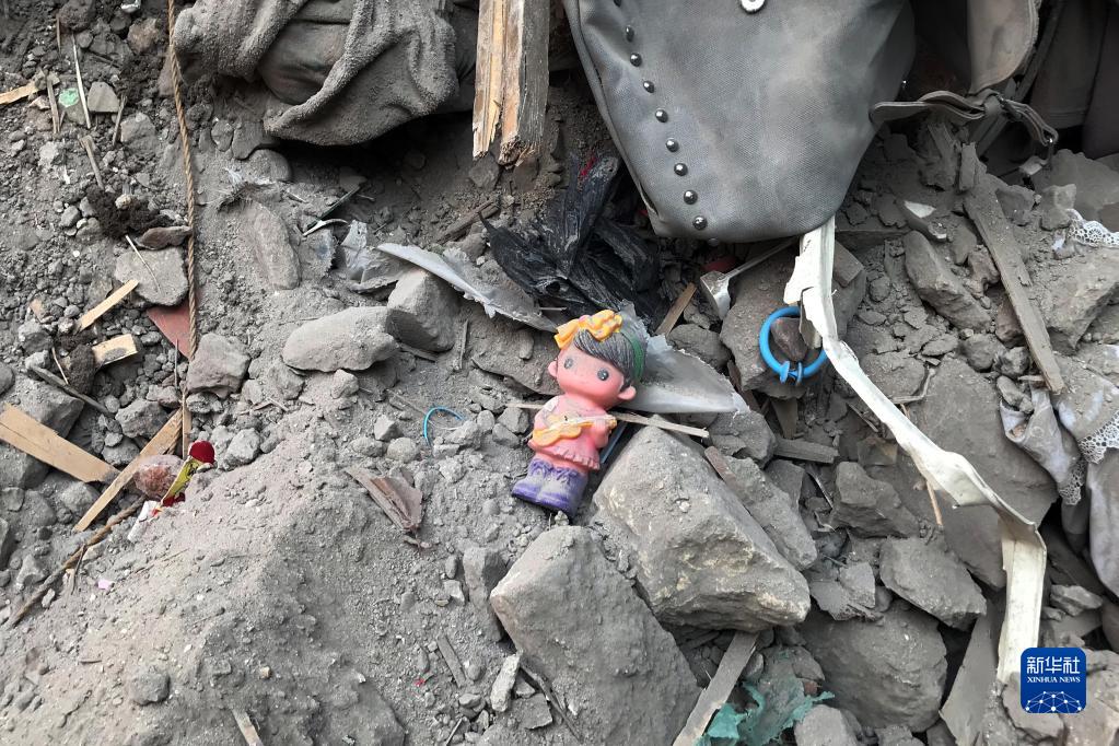 这是6月17日在埃及首都开罗楼房倒塌现场拍摄的废墟中的玩偶。新华社发(艾哈迈德·戈马摄)