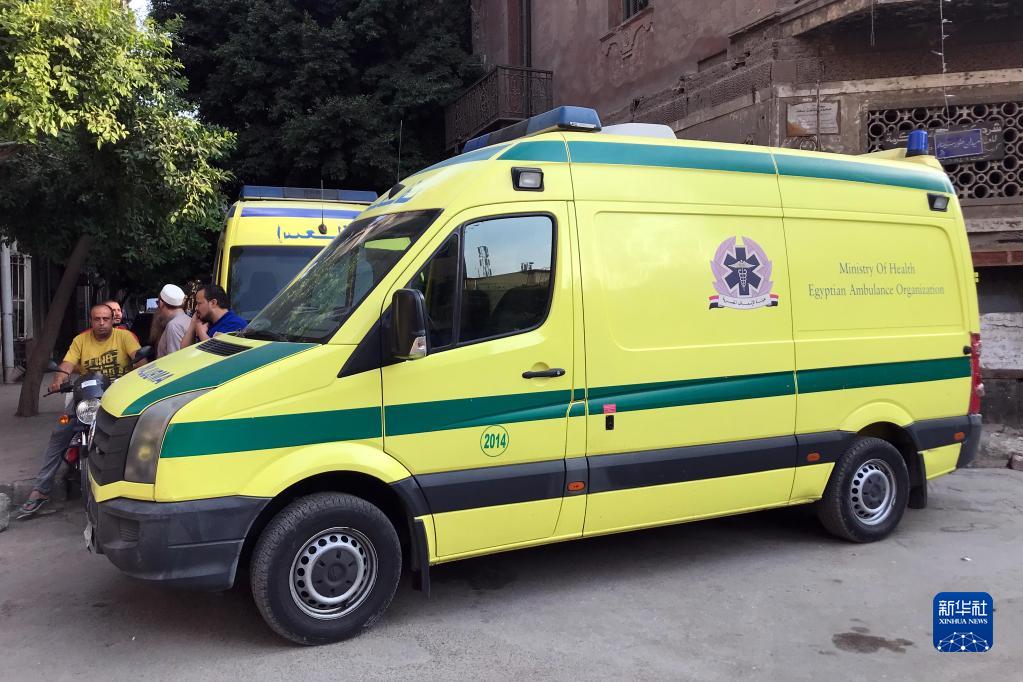 6月17日,在埃及首都开罗,一辆救护车停在楼房倒塌现场。新华社发(艾哈迈德·戈马摄)