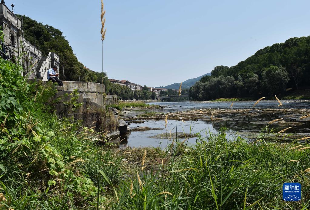 6月18日,一名男子坐在意大利都灵的波河岸边。新华社发