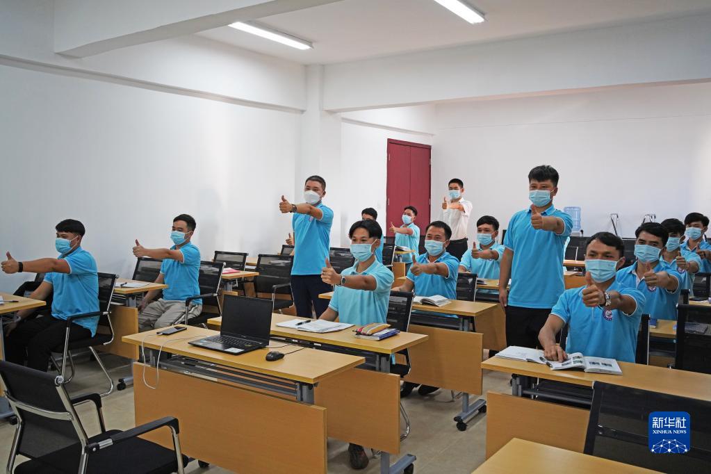 2021年12月12日,老挝学员在中老铁路万象南站参加课堂教学。新华社发(彭祥摄)