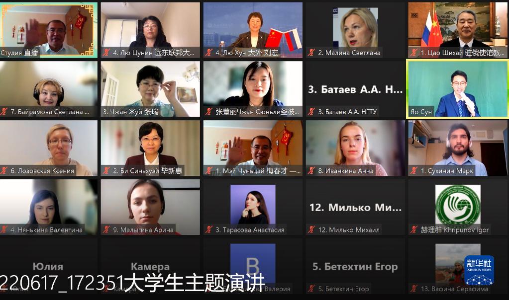 这是6月17日“汉语桥”中文比赛俄罗斯赛区的线上截图。新华社发(郭飞洲摄)