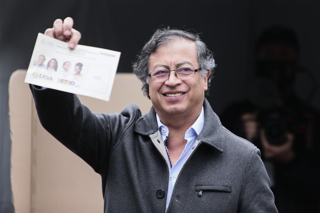 6月19日,左翼竞选联盟“哥伦比亚历史公约联盟”候选人古斯塔沃·佩特罗在哥伦比亚首都波哥大一处投票站投票。新华社发(帕斯摄)