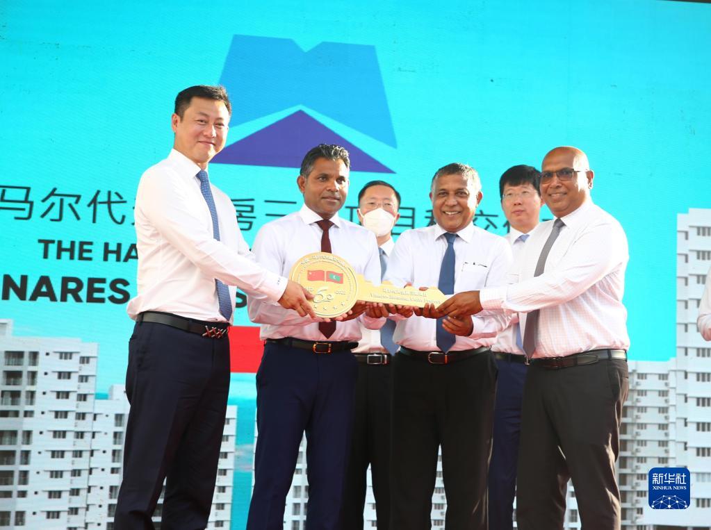 6月20日,马尔代夫副总统费萨尔·纳西姆(左二)在胡鲁马累参加住房三期项目移交仪式。新华社记者 车宏亮 摄