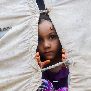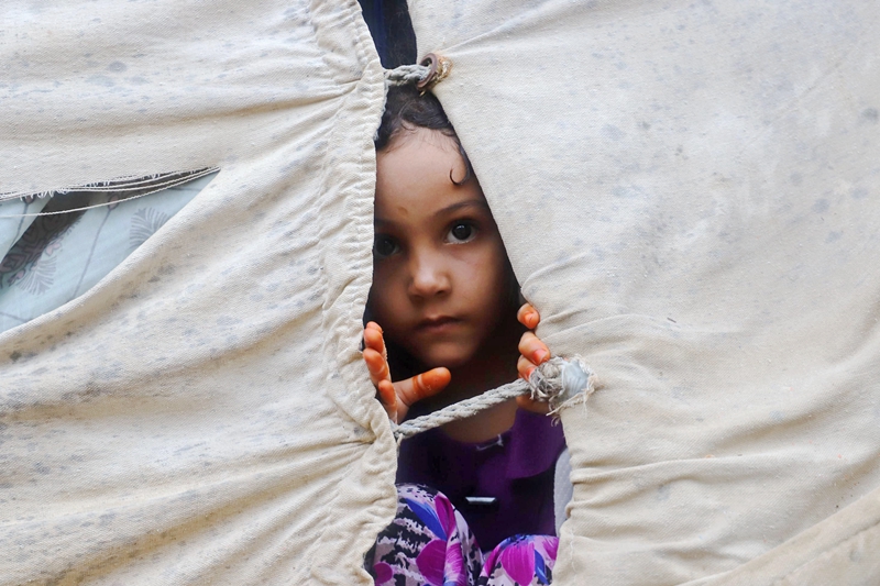 ↑这是2020年8月6日在也门萨达省一处流离失所者营地拍摄的一名儿童。