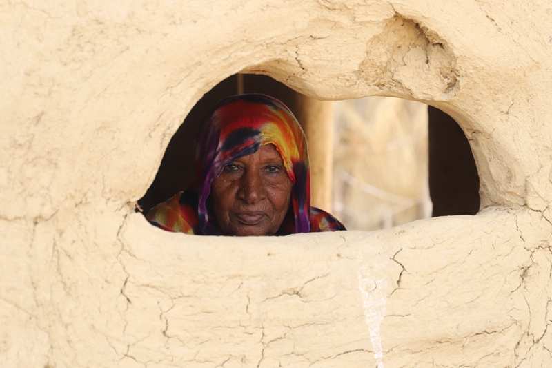 ↑2021年6月17日,一名妇女坐在也门北部哈杰省一座难民营的茅草屋内。