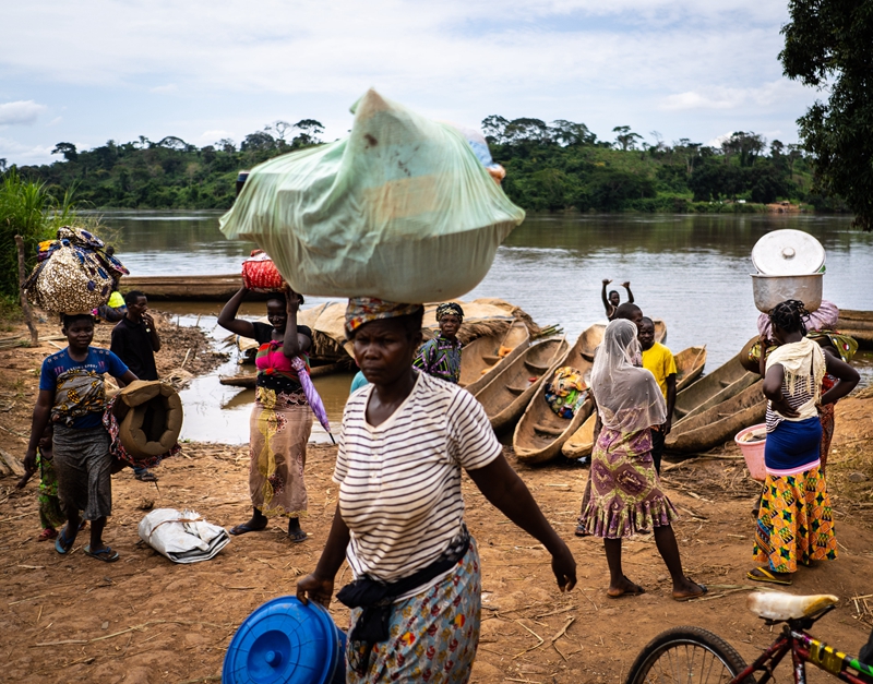 ↑这是2021年10月8日在中非共和国东南部城市班加苏拍摄的逃难的人。