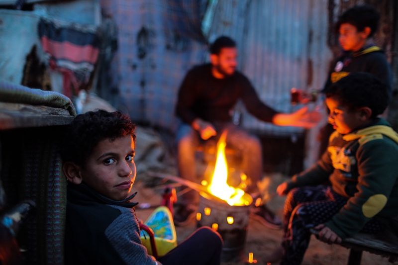 ↑2021年12月30日,巴勒斯坦人在加沙地带城市汗尤尼斯的一处难民营取暖。