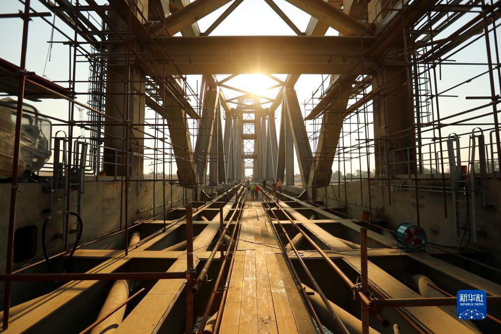 在埃及伊斯梅利亚省,由中企承建的苏伊士运河铁路桥旧桥改造升级项目主体结构近日完工。目前施工人员正抓紧收尾,以确保早日交付埃方。