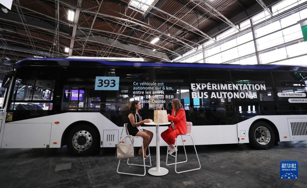 这是6月15日在法国巴黎举行的“科技万岁”科技创新展览会上拍摄的由中国中车旗下中车时代电动汽车股份有限公司(简称“中车电动”)制造的自动驾驶客车。