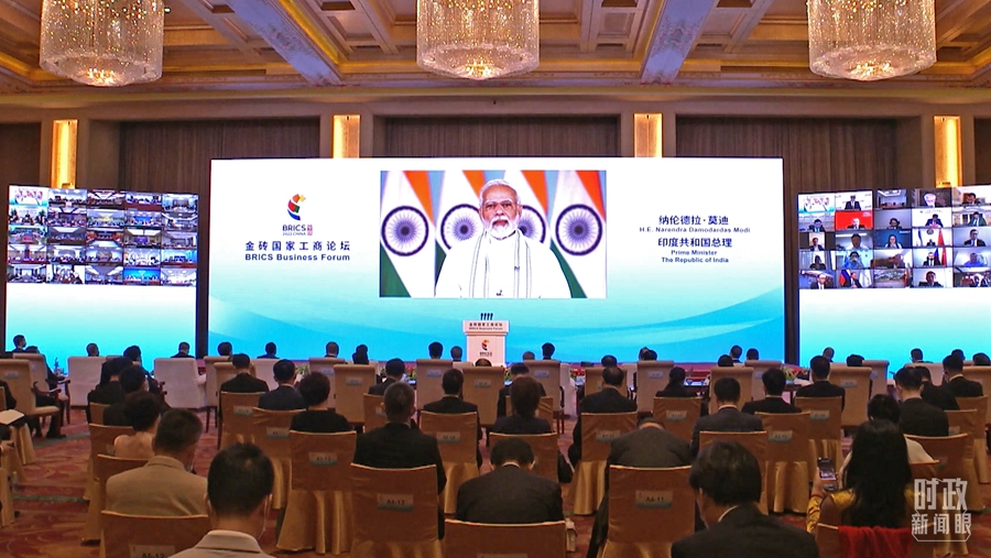 印度总理莫迪出席论坛开幕式并致辞。(总台央视记者陆泓宇拍摄)