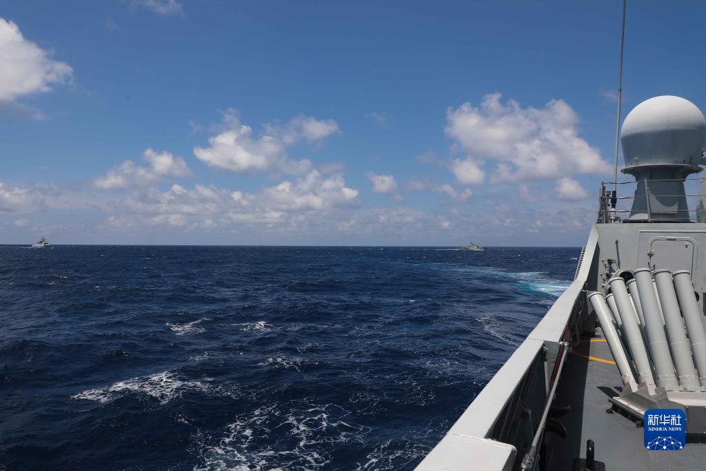 6月23日,结束联合巡逻的中越双方舰艇编队正在分航。新华社发(张彬 摄)