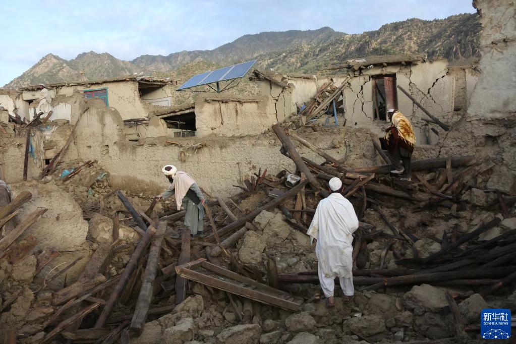 6月23日,在阿富汗帕克提卡省一座村庄,人们查看地震损坏的房屋。