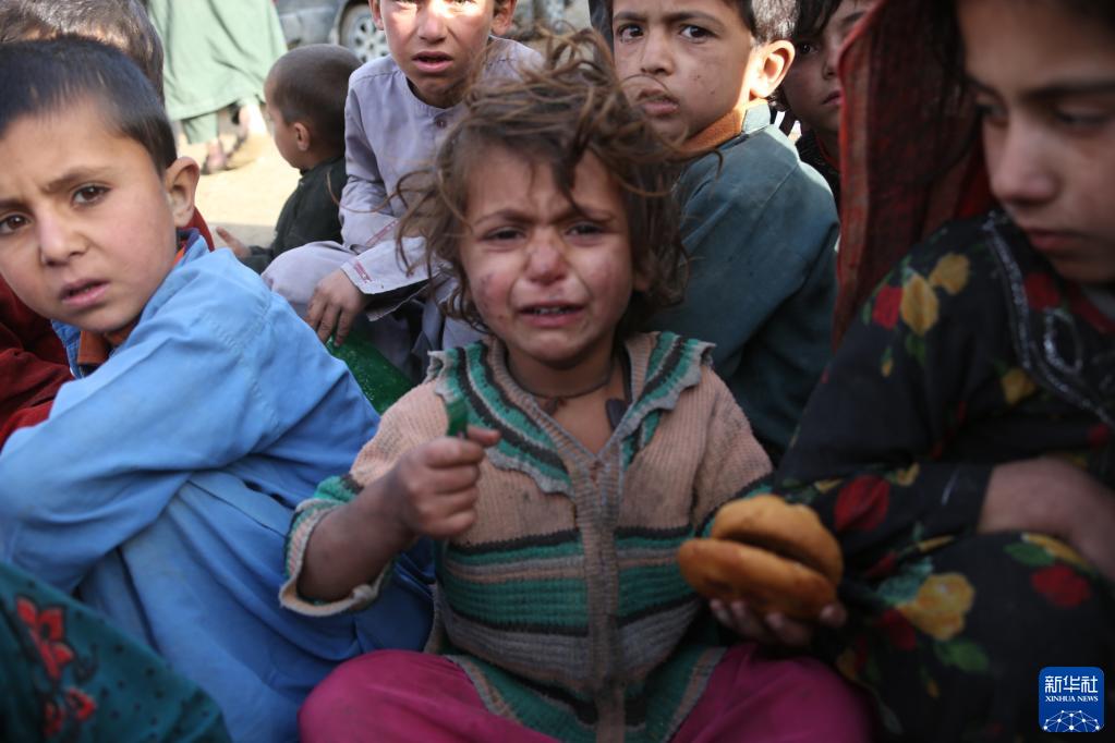 6月23日,在阿富汗帕克提卡省一座受灾村庄,一名孩子(中)情绪激动。
