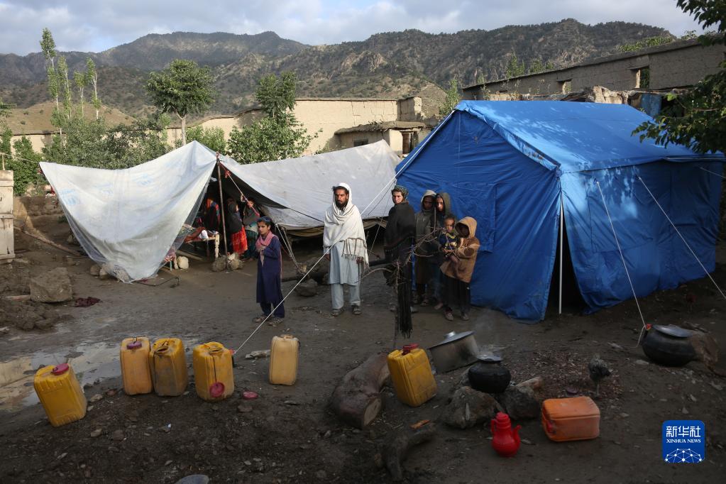 6月23日,人们站在阿富汗帕克提卡省地震灾区的临时帐篷前。