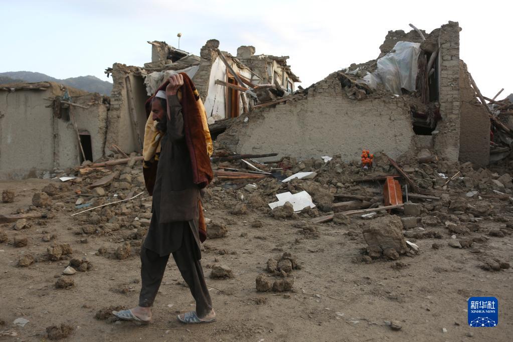 6月23日,一名男子经过阿富汗帕克提卡省地震灾区的房屋废墟。