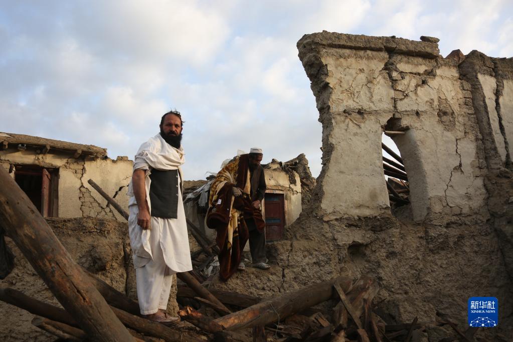 6月23日,人们站在阿富汗帕克提卡省地震灾区的房屋废墟中。