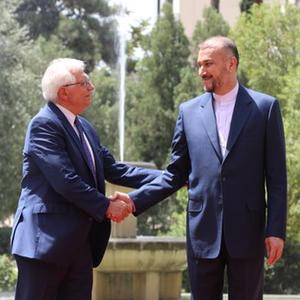 6月25日,伊朗外长阿卜杜拉希扬在德黑兰和欧盟外交与安全政策高级代表博雷利举行会晤。新华社发(伊朗外交部供图)