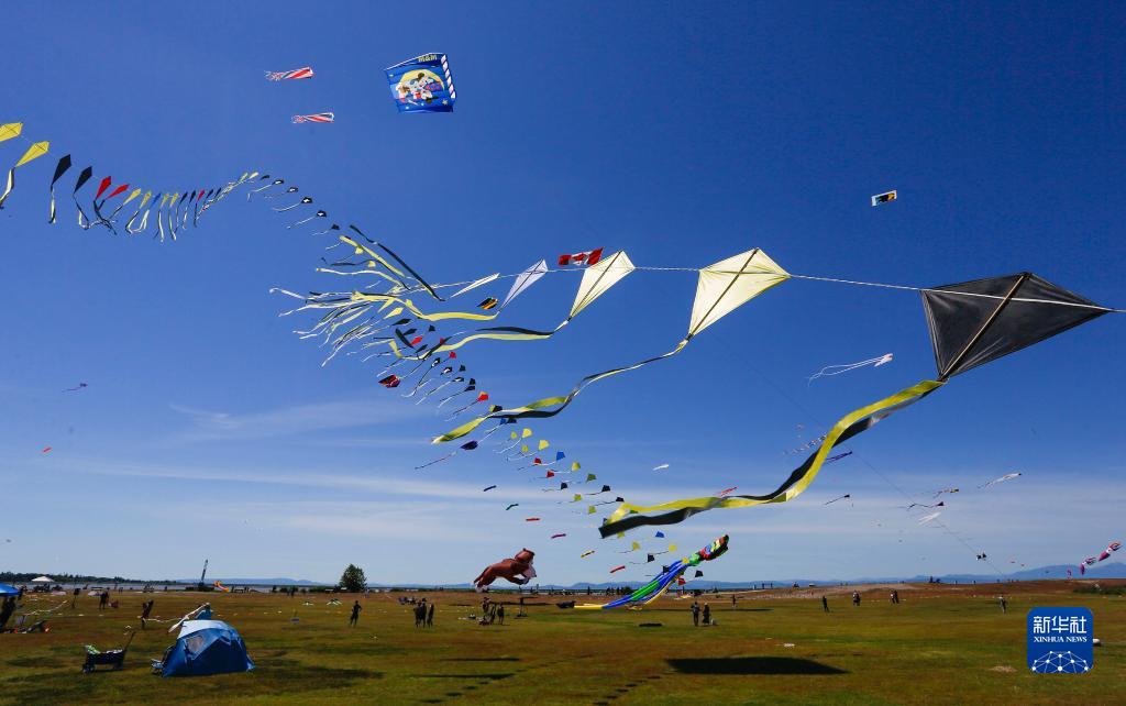 6月25日,在加拿大里士满举行的环太平洋风筝节上,各式各样的风筝在空中飞翔。