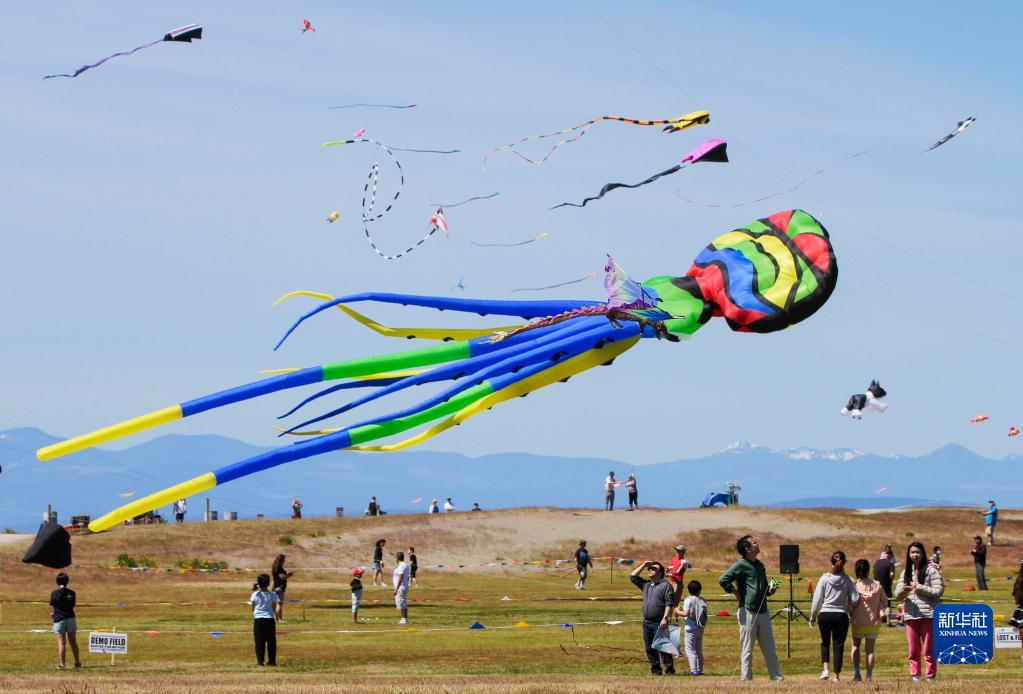 6月25日,在加拿大里士满举行的环太平洋风筝节上,人们欣赏放飞的风筝。