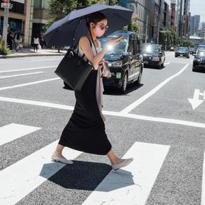 6月26日,行人打着遮阳伞走过日本东京银座街头。